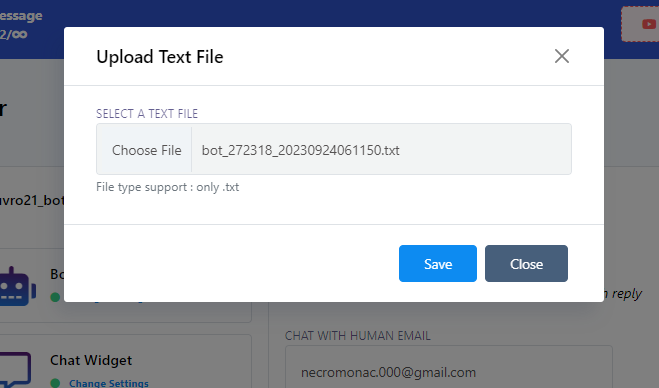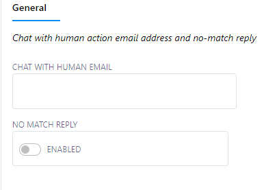Chat with Human Email: In the `Chat with Human Email` field, you must provide an email address. When a subscriber clicks on the `Chat with Human` button, an automatic email will be dispatched to the email address you`ve specified. This means that you will receive notifications via the provided email address when a subscriber wants to initiate a conversation with a human agent.