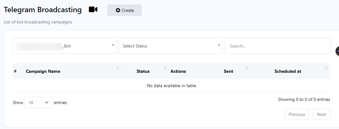 1. Go back to `Telegram Broadcasting` page.