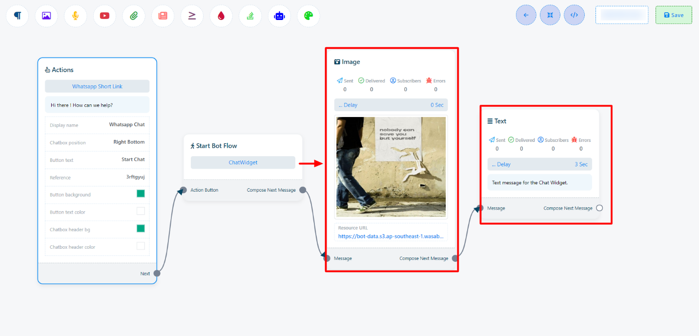 - Now let’s add desired reply from the `Start Bot Flow` and save the flow.
